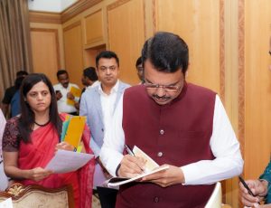 मुंबई प्रतिनिधी:मुख्यमंत्री देवेंद्र फडणवीस यांनी आज सह्याद्री अतिथीगृह, मुंबई येथे पुणे श्रमिक पत्रकार संघाच्या अभिजात मराठी भाषेवरील ‘वृत्तभाषा’ या स्मरणिकेचे प्रकाशन केले. यावेळी पत्रकार संघाचे अध्यक्ष सुनीत भावे, सरचिटणीस मीनाक्षी गुरव, खजिनदार शिवाजी शिंदे, श्रीकृष्ण कोल्हे व श्रीकृष्ण पादीर उपस्थित होते.